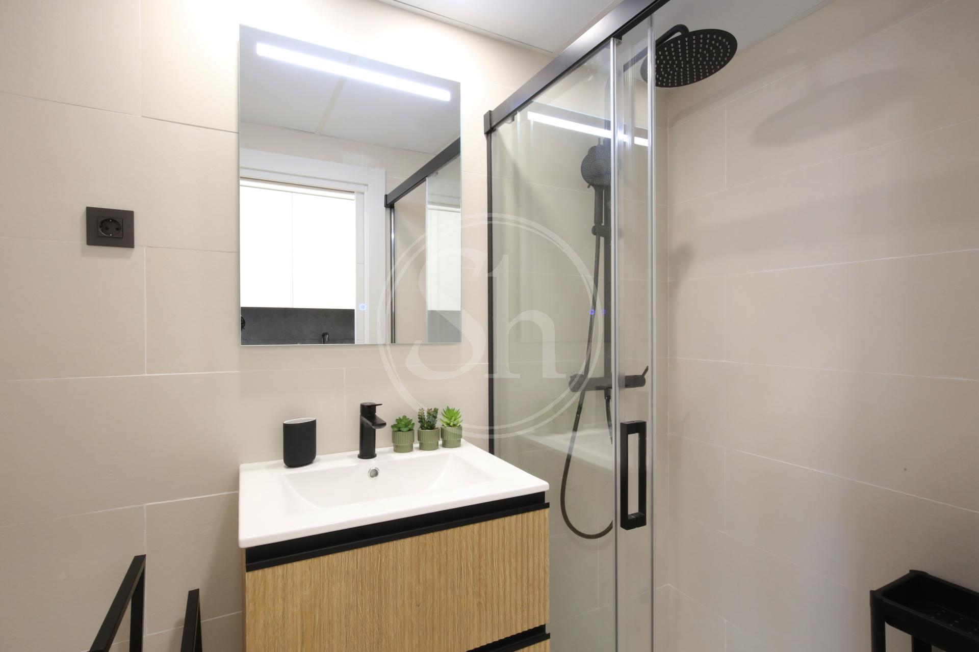 El apartamento dispone de un baño moderno, con ducha amplia y agradable, diseñado para ofrecer confort y funcionalidad.