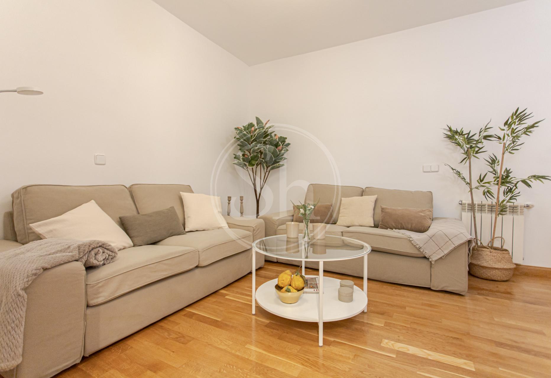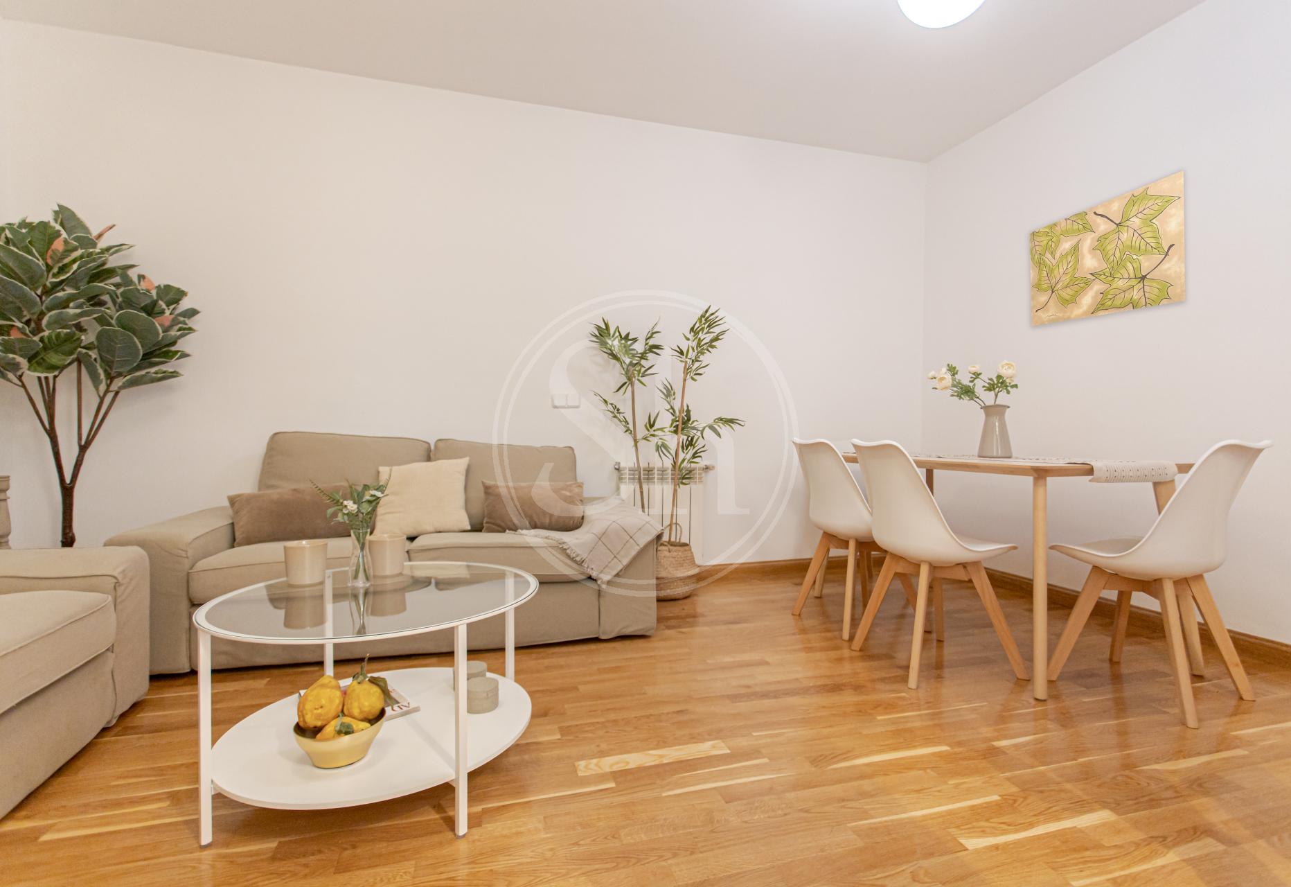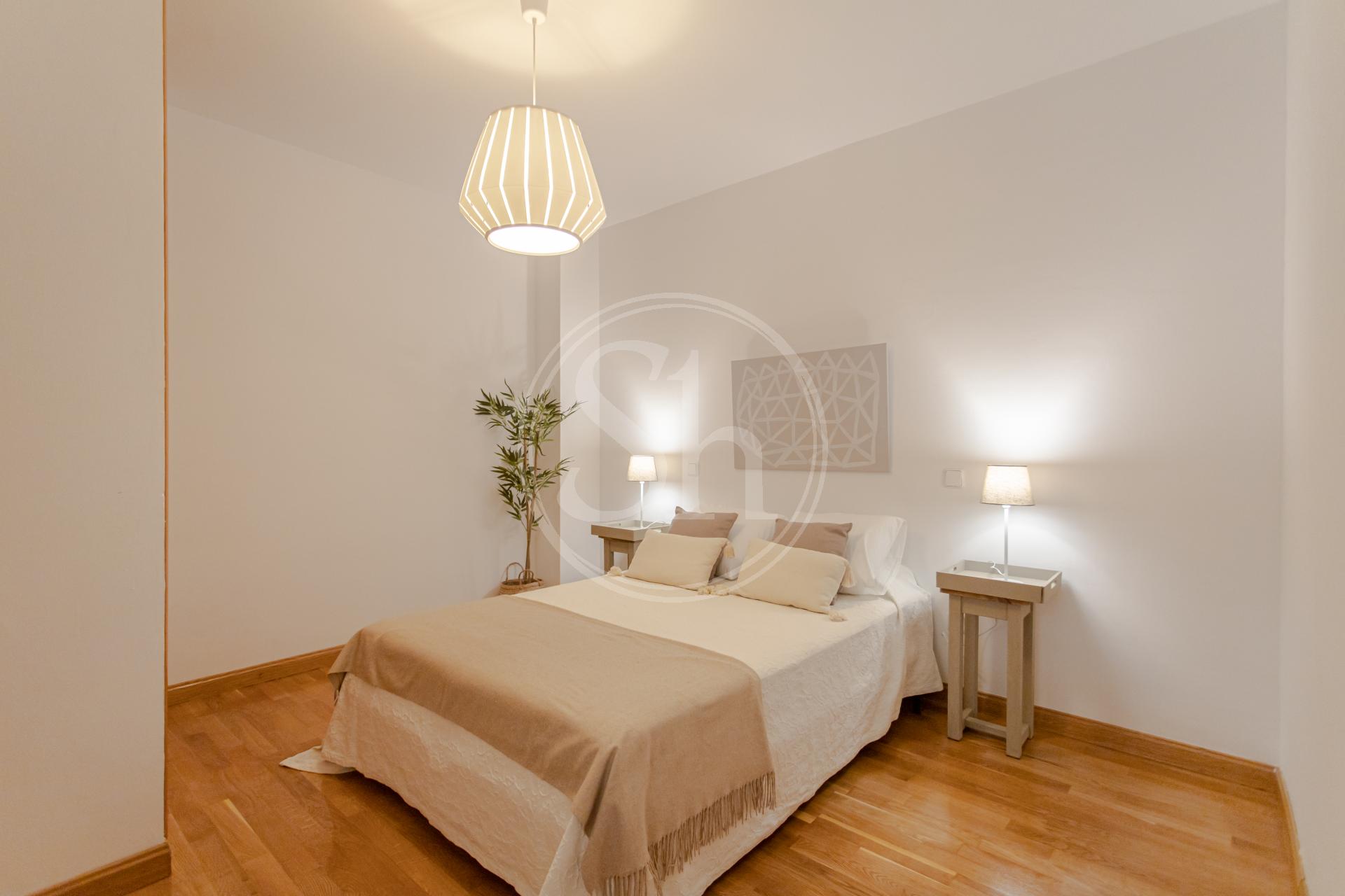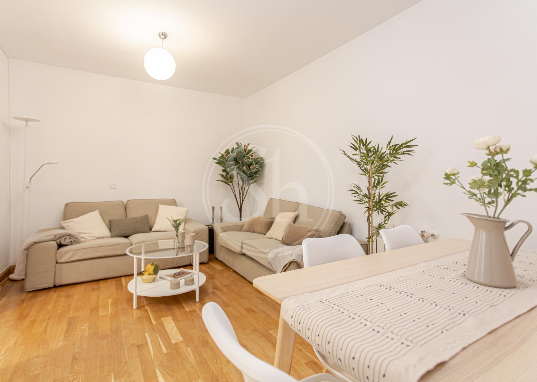 Appartement de 80 m² situé rue Lope de Vega à Madrid. Dès l'entrée, vous serez accueilli par un spacieux salon-salle à manger décoré dans un style moderne et chaleureux. Le mobilier élégant et confortable offre un espace idéal pour se détendre ou recevoir.