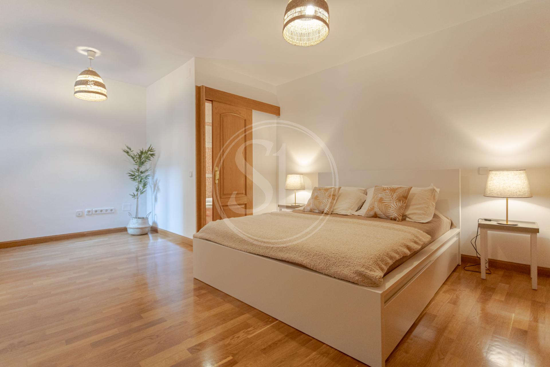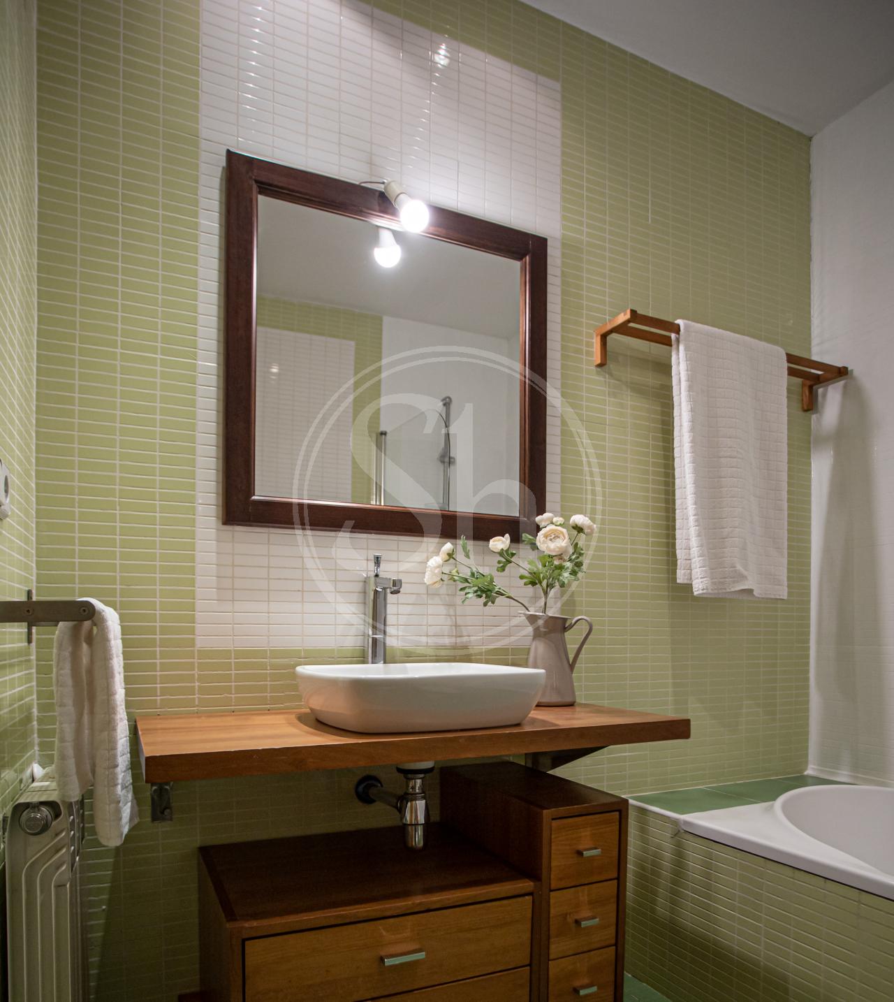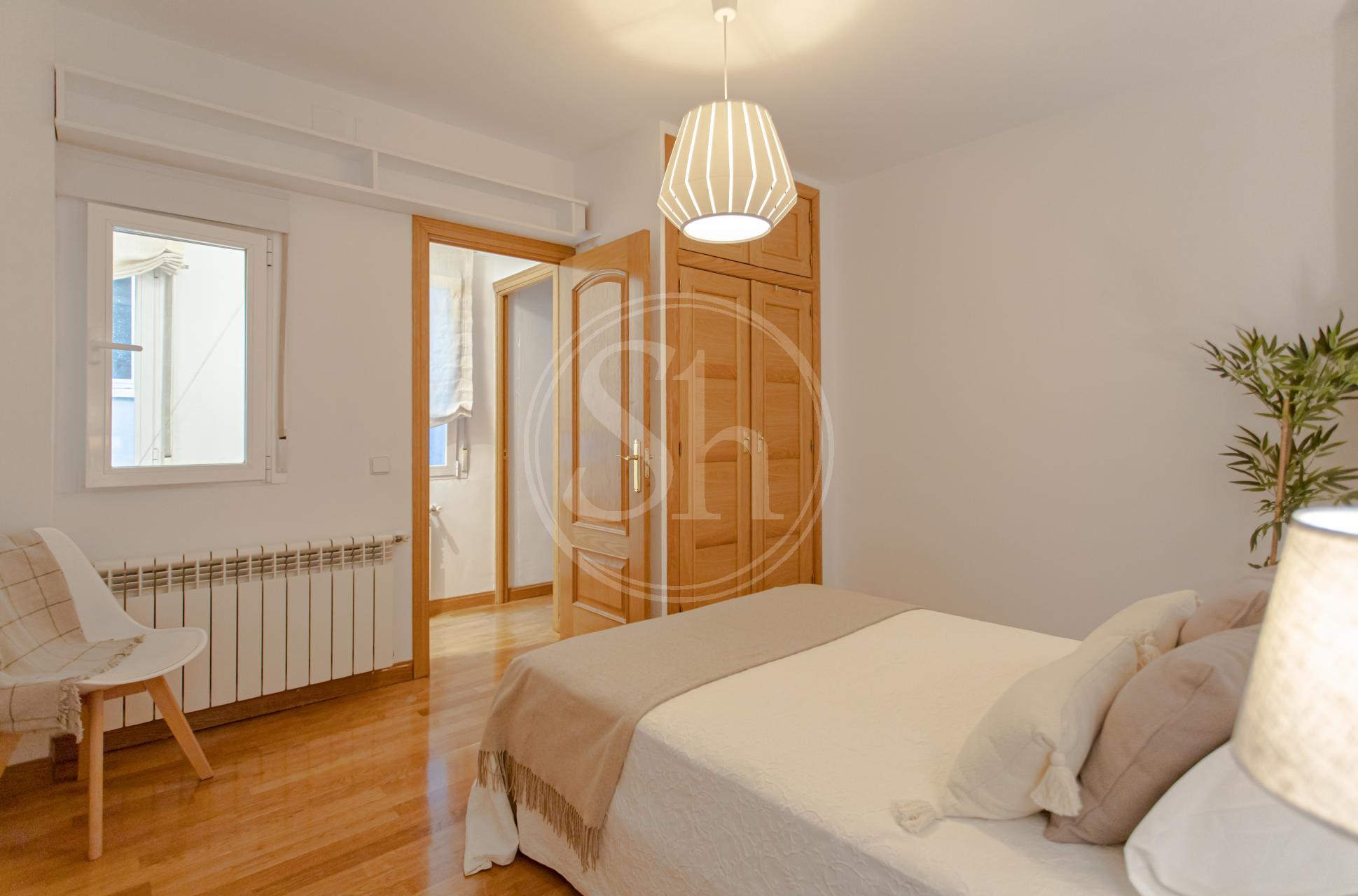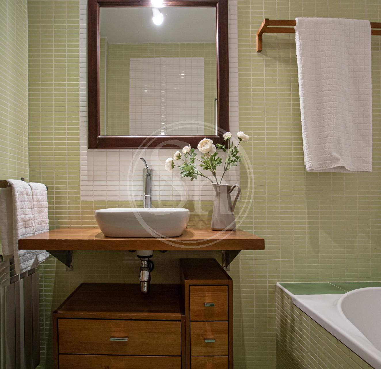 El piso dispone de dos habitaciones dobles muy amplios, cada una con espacio para camas grandes y armarios empotrados. Los baños completos, uno de ellos en suite, presentan un diseño contemporáneo con azulejos elegantes.