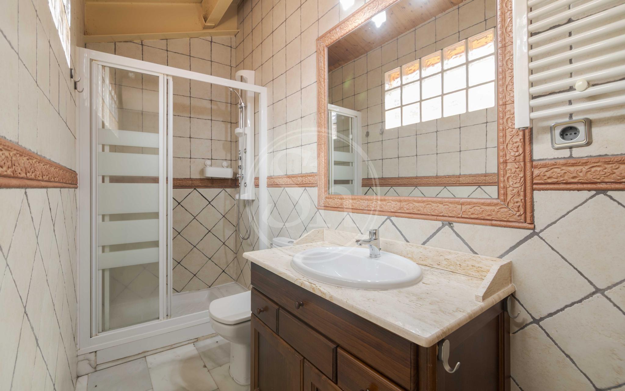 El apartamento dispone de un dormitorio independiente con cama doble y amplio armario de almacenaje, además de un baño completo con ducha, gran espejo y mueble bajo lavabo.