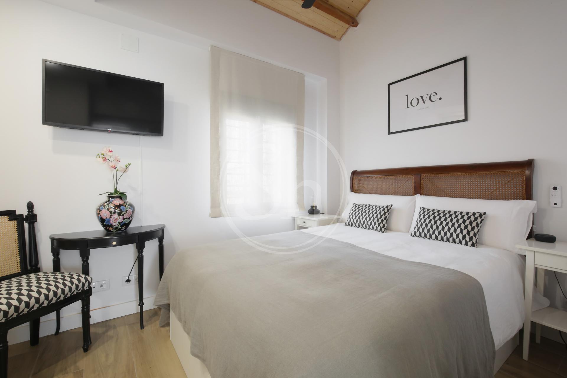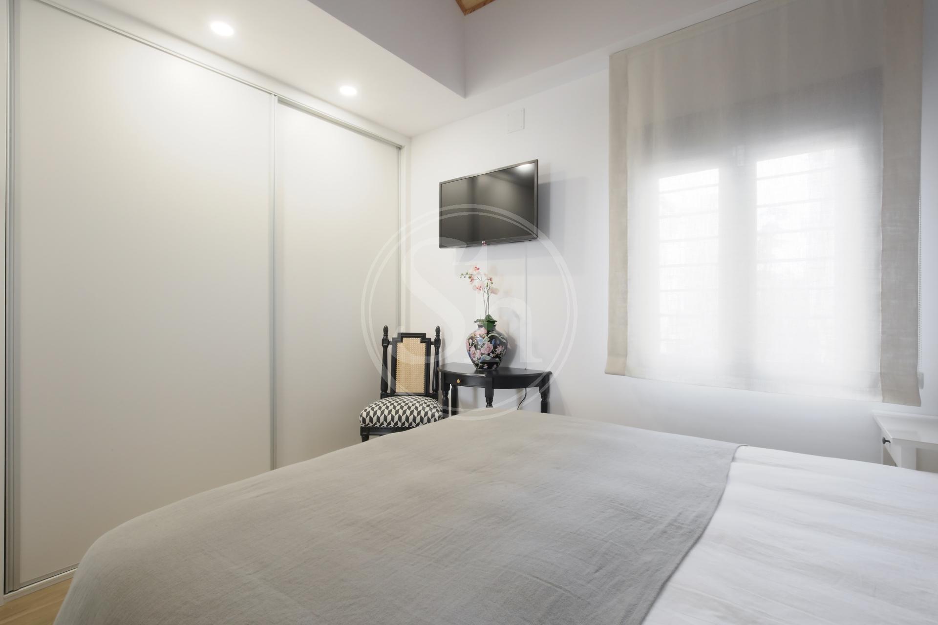 En la segunda planta se encuentra el dormitorio principal, con un gran armario empotrado que ofrece mucha capacidad de almacenaje. El segundo dormitorio ha sido adaptado como despacho / vestidor, permitiendo versatilidad para trabajar, vestirse o relajarse.
